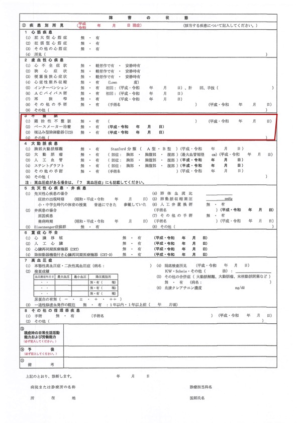 難治性不整脈で障害年金を請求する際に使用する診断書は「循環器疾患の障害用の診断書」になります。